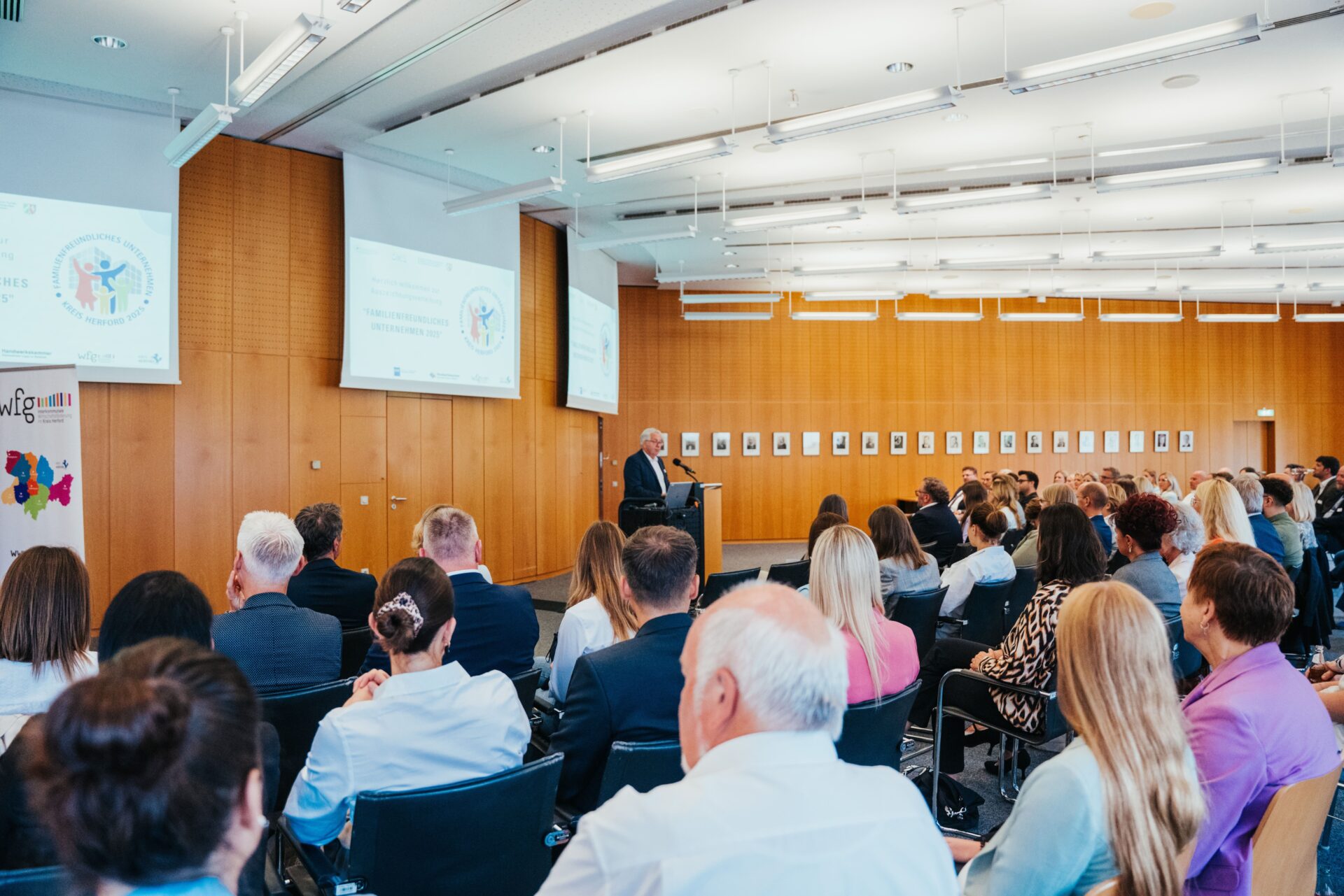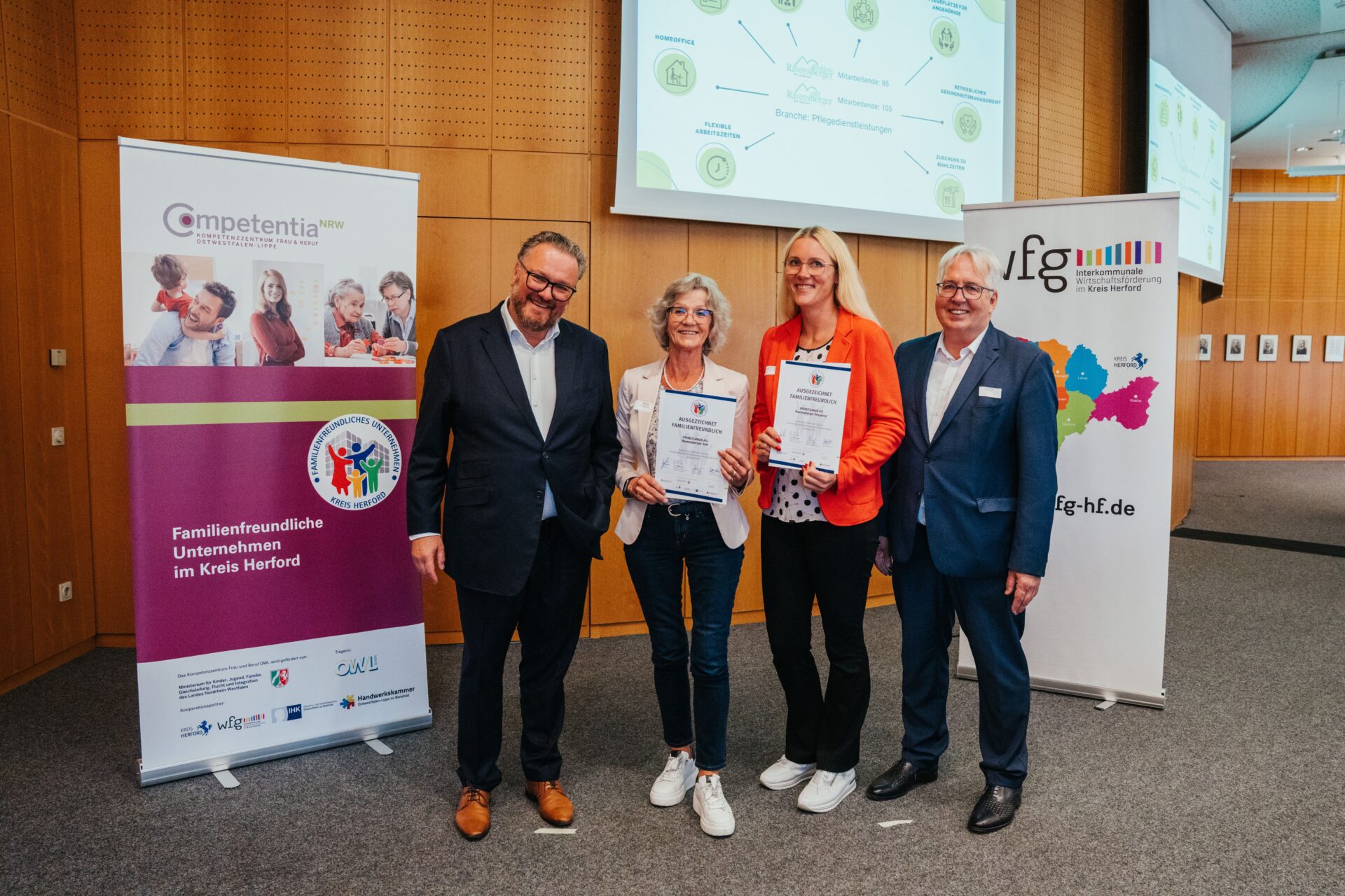 Die vier Häuser der Praetorius AG sind erneut als „Familienfreundliches Unternehmen im Kreis Herford 2025“ ausgezeichnet worden. Im Kreishaus Herford erhielt das Haus am Wiehen, das Haus Ravensberg, die Ravensberger Residenz und das Ravensberger Stift gemeinsam mit weiteren Betrieben die Urkunde für sein Engagement zur besseren Vereinbarkeit von Beruf, Familie und Pflege. Die Rezertifizierung bestätigt, dass die Praetorius AG seine familienfreundlichen Maßnahmen konsequent weiterführt und ausbaut und zeigt zudem, dass Familienfreundlichkeit fester Bestandteil der Unternehmenskultur ist.