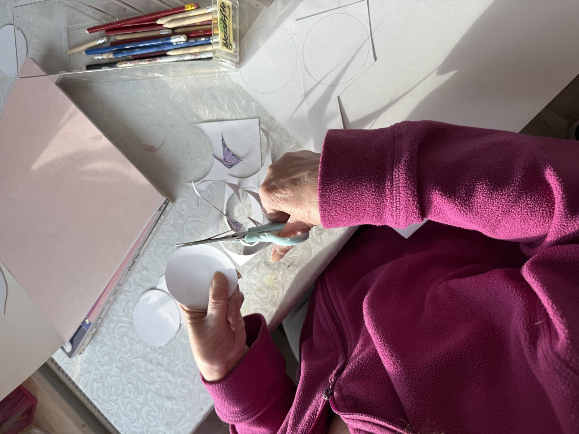 Unsere Kreativgruppe war wie immer fleißig und bastelte passend zum regnerischen Herbstwetter kleine bunte Papierregenschirme, die jetzt unsere Fenster verzieren!